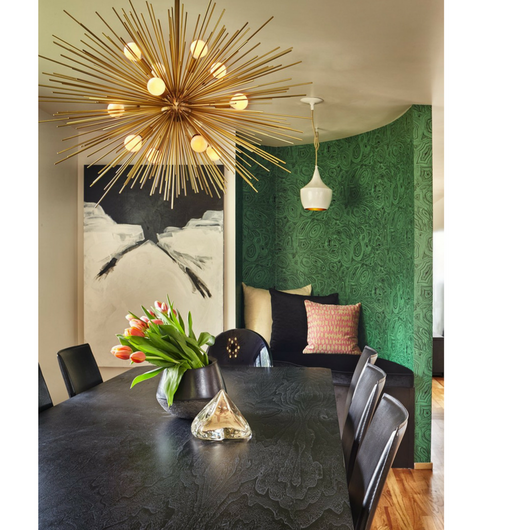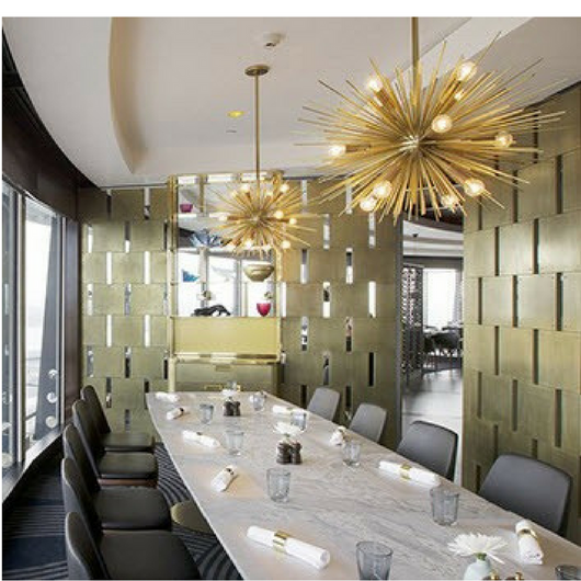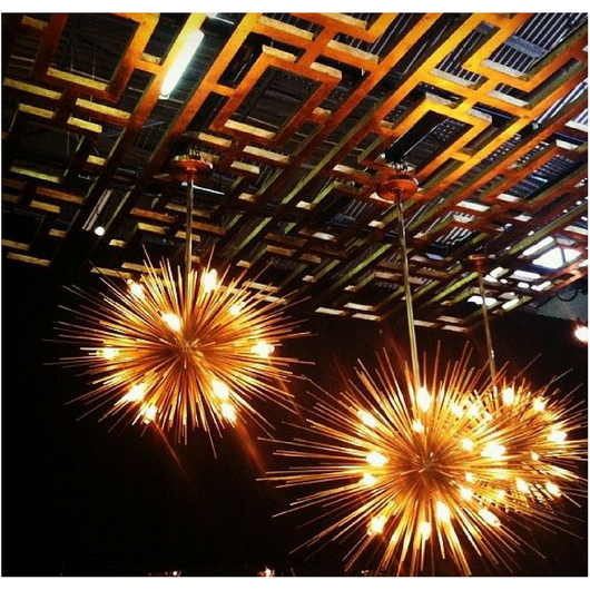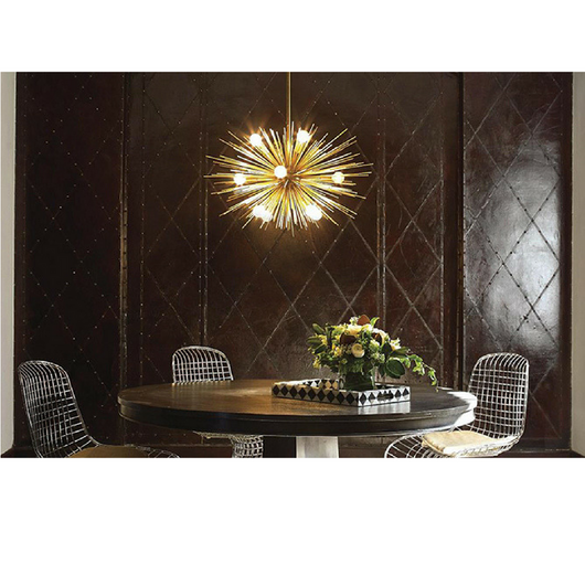 12 light starburst design in polished nickel nor antique brass is perfect by itself or can be grouped