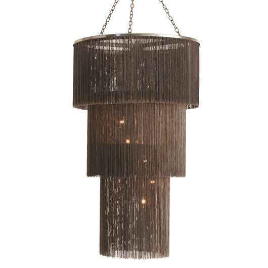 Three graduated circles draped with vintage silver chain enclose this 6 light chandelier