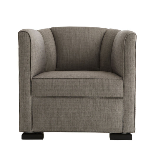 This comfortable club chair belongs in the gentleman's library! Updated with contemporary design details like oversized tufting, exposed seams and beveled wood legs in a charcoal finish. Available in Cremini Tweed and Woodrose Tweed, tightly woven fabrics with earthy undertones.